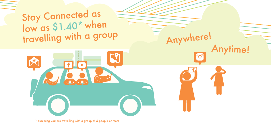 Travelling with a group of friends or family? Stay connected for as low as $2.00 per day when travelling with a group of 5 or more